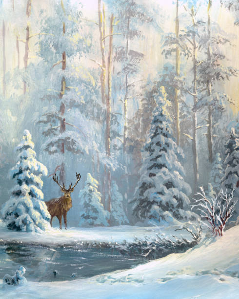 Öl Gemalt Winterwald Stock Vektor Art und mehr Bilder von